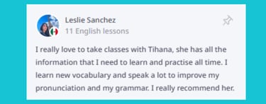 Zahvalna sam što sam tokom godina radila sa toliko divnih učenika. Evo nekoliko njihovih iskrenih utisaka i povratnih informacija sa časova koje smo delili na raznim platformama. Njihov napredak i zadovoljstvo me inspirišu svakog dana!